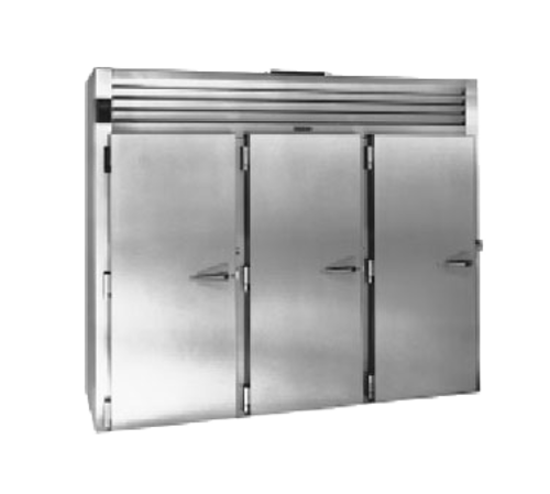 Spec-Line Refrigerator, Roll-thru, three-section, designed for remote refrigeration, stainless steel exterior, aluminum interior, standard depth cabinet, full-height doors, accepts 66" high racks (by others) with microprocessor controls, cULus, NSF