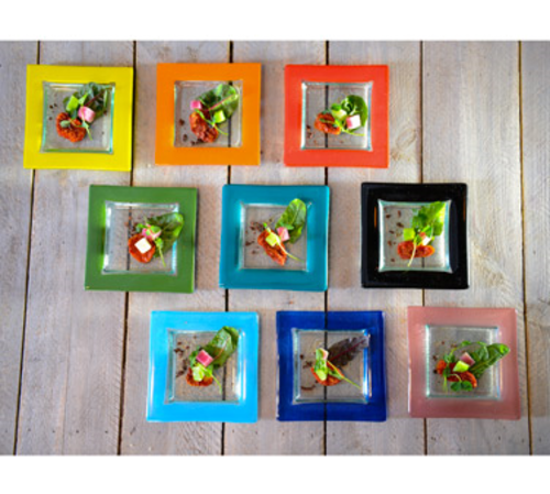 Fusion B&B/Side Dish, 6", square, glass, clear center with orange rim (priced by each, packed 12 each per case, case cannot be broken)