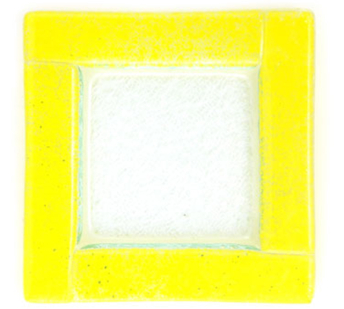 Fusion B&B/Side Dish, 6", square, glass, clear center with yellow rim (priced by each, packed 12 each per case, case cannot be broken)