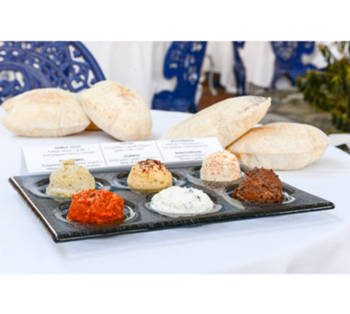 Fusion Plate, rectangular with 6 round compartments, glass, charcoal, (priced by each, packed 12 each per case, case cannot be broken)