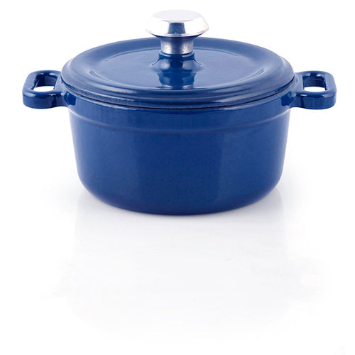 Mini Cocotte, 15 oz. (flush filled), 5-1/2" dia. round, dual side handles, self basting lid with heat safe knob handle, stovetop/gas/induction/oven/dishwasher safe, enameled cast iron, cobalt blue