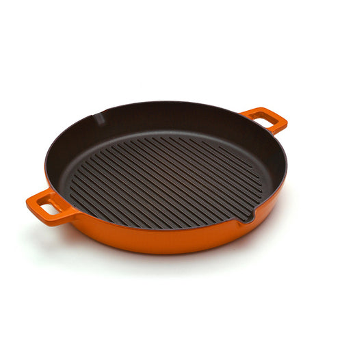 Grill Pan, 2-3/5 qt., 11-7/8" dia., round, dual side handles, stovetop/gas/induction/oven/dishwasher safe, enameled cast iron, orange
