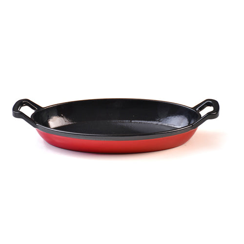 Pan, 11 oz., 9-1/2" x 5-1/2", oval, dual side handle, stovetop/gas/induction/oven/dishwasher safe, enameled cast iron, red