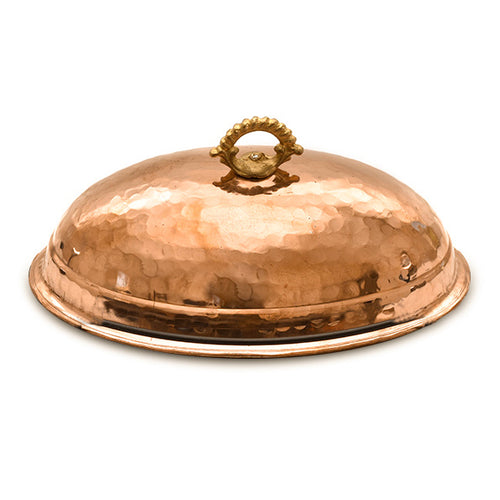 Plate Lid, 10-1/4" dia., round, stovetop/gas/induction/oven/dishwasher safe, copper, hammered finish