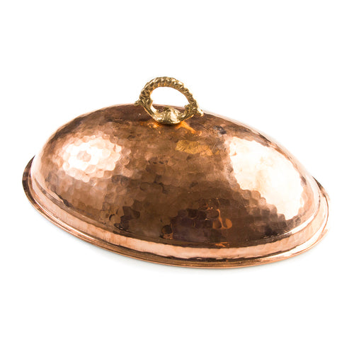 Plate Lid, 12-1/2" x 9", oval, stovetop/gas/induction/oven/dishwasher safe, copper, hammered finish