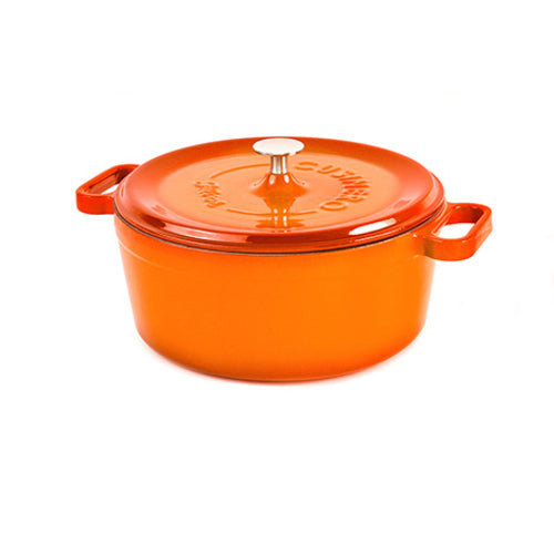 Pot, 6 qt., 11" dia., round, dual side handles, self basting lid with heat safe knob handle, stovetop/gas/induction/oven/dishwasher safe, enameled cast iron, orange