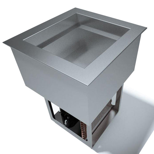Refrigerated Drop-In Cold Pan, (1) 2/3 size pan capacity, 1" deep pan rails, 1" drain, stainless steel top & liner, corrosion resistant steel body, self-contained, R134a refrigerant, 1/4 HP, 115v/60/1-ph, 3.7amps, NEMA 5-15P, cULus, NSF, Made in USA