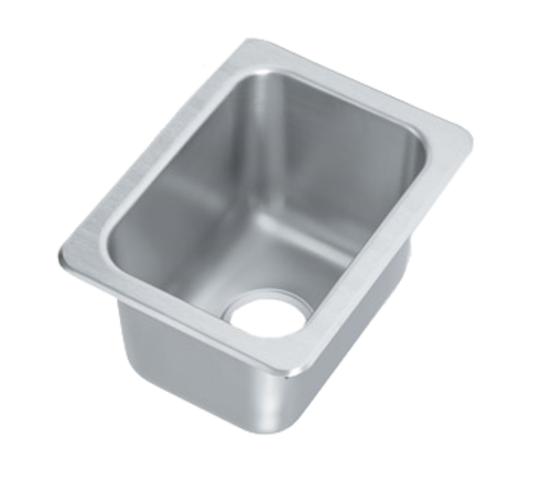 Drop-In Sink, one compartment, 10"W x 14" front-to-back x 10" deep compartment, self-rimming, 3-1/2" drain, (4) stud mounts with mounting brackets included, 20/304 stainless steel one-piece drawn construction, 13"W x 17"D (overall), Made in USA