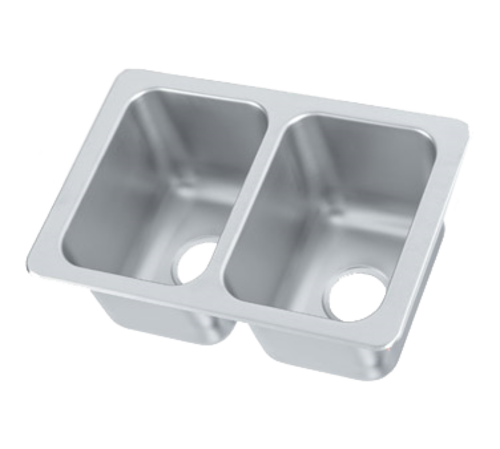Drop-In Sink, two compartment, 10"W x 14" front-to-back x 10" deep compartments, self-rimming, 3-1/2" drains, (8) stud mounts with mounting brackets included, 20/304 stainless steel one-piece drawn construction, 25"W x 17"D (overall), Made in USA