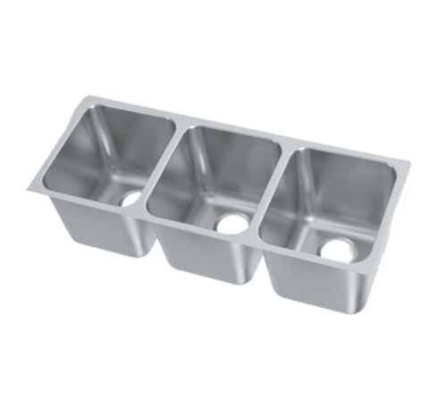Weld-In / Undermount Sink, three compartment, 14"W x 12"D x 12" deep, 3-1/2" drain, 1" flange, square corners, not self-rimming or undercoated, super heavy weight 18 gauge stainless steel, Made in USA (does not include frame)