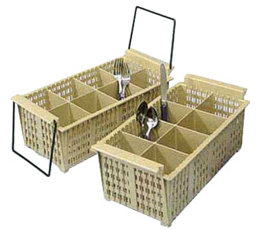 Traex® Flatware Basket, half-size, (8) compartment, without handles, 16-7/8"W x 8-1/8"D x 5-7/8"H (compartment size 3-1/2"W x 3-1/2"D x 4-1/4"H), co-polymer plastic, beige, NSF, Made in USA