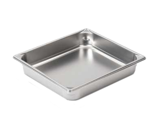 Super Pan V® Food Pan, 1/2 size, 2-1/2" deep, 4.3 qt capacity, 22 gauge, 300 series stainless steel, reinforced pour corners, reverse formed flattened edges, anti-jamming design, NSF, Made in USA, Jacob's Pride® Collection, Limited Lifetime Warranty