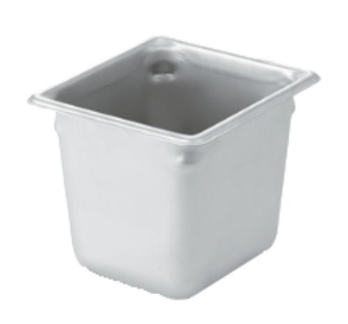 Super Pan V® Food Pan, 1/6 size, 6" deep, 2.7 qt capacity, 22 gauge, 300 series stainless steel, reinforced pour corners, reverse formed flattened edges, anti-jamming design, NSF, Made in USA, Jacob's Pride® Collection, Limited Lifetime Warranty