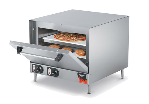 Pizza/Bake Oven, electric, stainless steel exterior & interior, supplied with (2) ceramic bake decks, 15-minute timer function, shelf size 17-1/2", 2-7/8" between shelves, heat setting 140°F-750°F, 208-240v/60/1-ph, 10.1-11.6 amps, 2100-2800W, NEMA 6-15P, OA dimension 25-3/4"W x 23-1/8"D x 21-3/4"H, cooking chamber size 19-3/16"W x 18-1/2"D x 9-7/16"H, model# POA8002, NSF, cUL, imported
