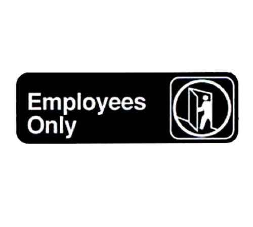 Employees Only Sign, 3" x 9", white on black, Made in USA