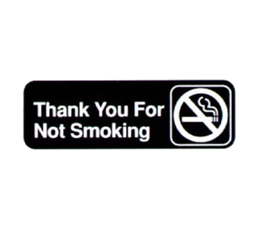 Thank You For Not Smoking Sign, 3" x 9", white on black, Made in USA