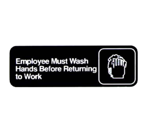 Employees Must Wash Hands Before Returning to Work Sign, (English), 3" x 9", white on black, Made in USA