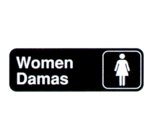 Women/Damas Sign, (English/Spanish) 3" x 9", white on black, Made in USA