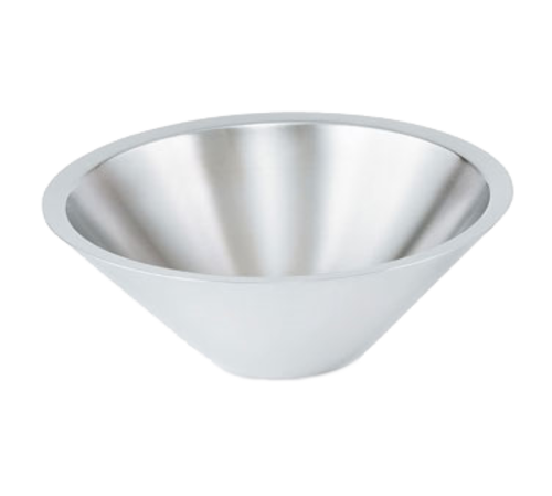 (DISCONTINUED upon depletion of stock, contact factory for availability) Conical Bowl, double wall insulated, large, 2.8 quart (2.6L), 11" top diameter x 3-7/8"H, 18-8 stainless, mirror finish top rim & exterior, satin finish exterior bottom & inside, NSF, imported