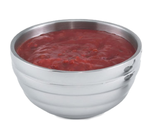 Round Beehive Insulated Double-Wall Bowl, .75 quart (.7L), 18/8 stainless steel with mirror exterior finish & satin interior finish, requires no preheating or chilling to maintain proper food temperature, 5-11/16" top diameter, 3"H, dishwasher safe, NSF, imported
