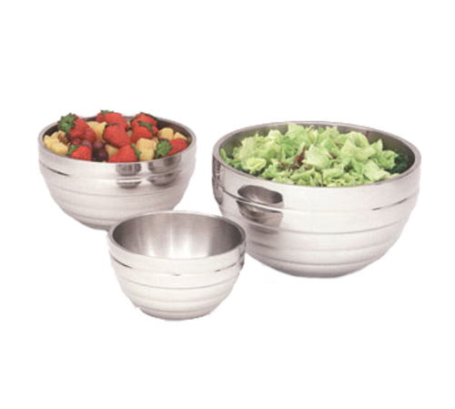 Round Beehive Insulated Double-Wall Bowl, 1.7 quart (1.6L), 18/8 stainless steel with mirror exterior finish & satin interior finish, requires no preheating or chilling to maintain proper food temperature, 7-1/4" top diameter, 4"H, dishwasher safe, NSF, imported