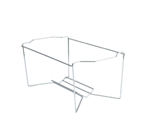 Wire Chafer Stand, heavy duty wire, 1/4" diameter, chrome plated steel, unique "V" shaped fuel cup shelf can hold 1, 2, or 3 fuel holders, designed to hold (1) dripless water pan, stackable for compact storage, Made in USA