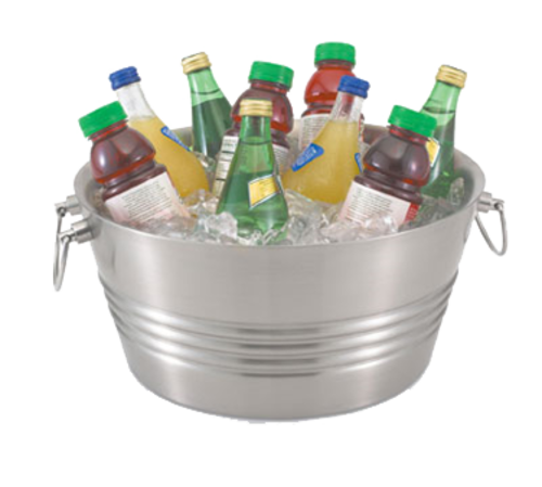 Round Tabletop Beverage Bin, small, 10 quart, conical shaped, stainless steel, double wall insulated Beehive design, satin finish, 14-1/2" top diameter, 11-1/4" bottom diameter, 7" high, imported