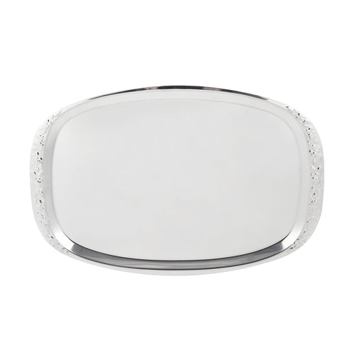 (DISCONTINUED upon depletion of stock, contact factory for availability) Cater Tray, 19"W x 12-3/8"D x 1/2"H, rectangular, delicate edging, mirror-finish, stainless steel, imported