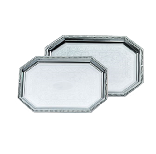 (DISCONTINUED upon depletion of stock, contact factory for availability) Odyssey™ Serving Tray, small, octagon, chrome plated, with decorative engraving on base of tray & decorative rim, 17-1/8" x 10", imported (not dishwasher safe)