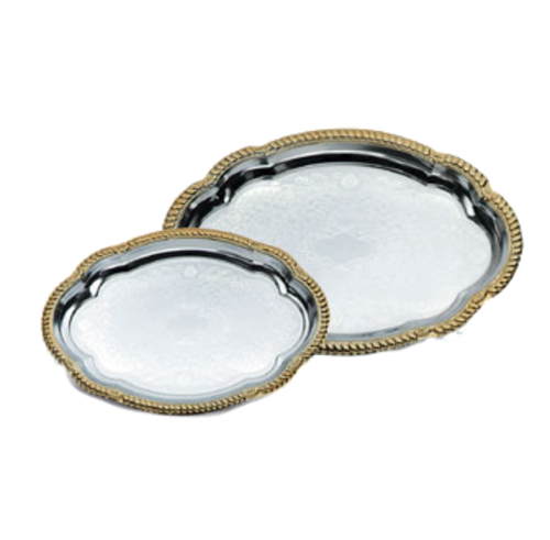 Odyssey™ Serving Tray, large, oval, chrome plated, with decorative engraving on base of tray & decorative rim, 18-1/8" x 13", imported (not dishwasher safe)