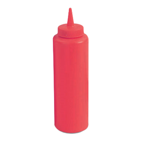 Squeeze Bottle, 12 oz., slim profile, red plastic, Made in USA
