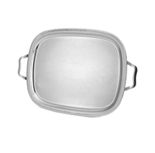 Elegant Reflections™ Serving Tray, oblong, with handles, 17-7/8"W x 13-7/8"D (45.4 x 35.2cm), traditional engraving with scalloped gadroon edge, 18/8 stainless steel mirror finish, imported