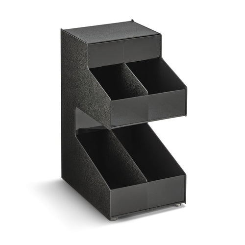 First In First Out Gravity Condiment Holder, 8-1/4"W x 12"D x 16-15/16"H, (4) sections (2 over 2) 2"W x 2"D, flip up top lid, ABS & smoked acrylic, Made in USA