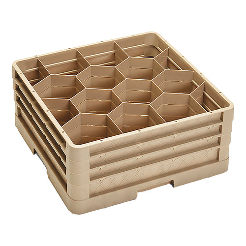 Traex® Rack Max®, full size, (12) compartment cup/glass, closed wall base with three extenders, compartment size 4-3/4" dia. hexagon, 7-7/8" inside height, co-polymer plastic, beige, NSF, Made in USA, (made to order)