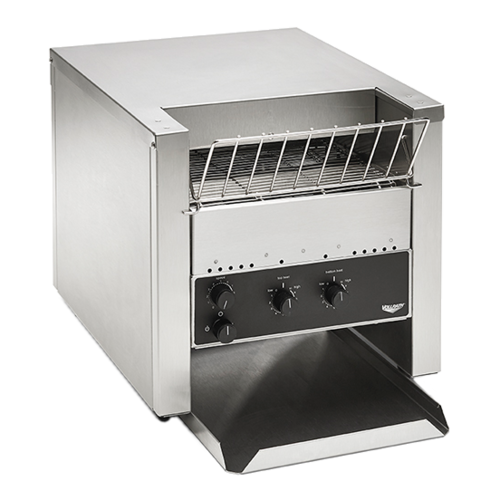 Conveyor Toaster, horizontal conveyor, all bread types, (800) slices per hour, 14-1/8"W x 23-3/4"D x 14"H, 1-3/4"H opening x 10-1/2"W belt (2 slice wide), variable speed control, variable top & bottom quartz heater controls, power saver mode, fan safety switch, stainless steel & aluminized steel construction, 1" adjustable legs, 208v/60/1-ph, 2.8kW, 13.5 amps, cord with NEMA 6-20P, NSF, cULus, Made in USA (model JT2)