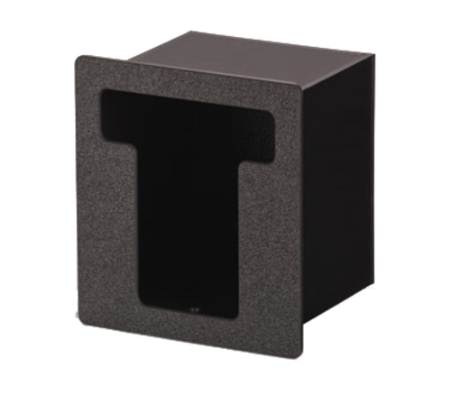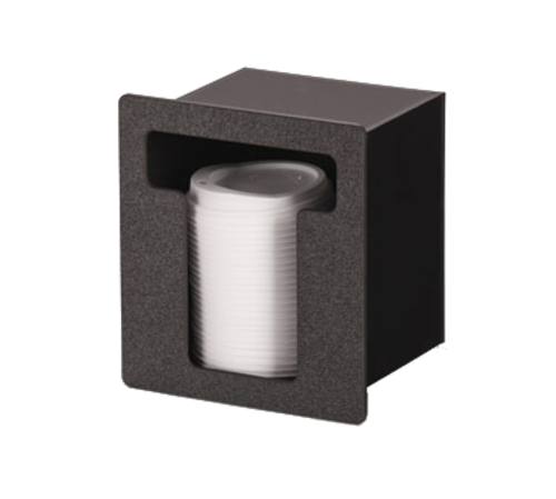 Flush Mount Lid Holder, (1) column, horizontal or vertical mount, 6-1/2"W x 5-3/8"D x 7-1/4"H (overall), 6-5/16" x 5-9/16" (cutout size), black impact-resistant molded thermoplastic construction (includes mounting screws)