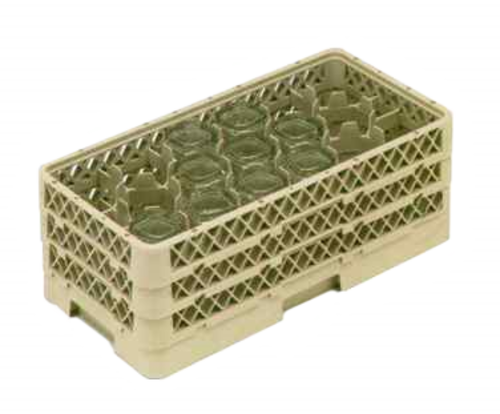 Traex® Rack-Master Dishwasher Rack, half size, (17) compartment, stemware, compartment size 2-15/16" x 2-15/16", with (3) 17- compartment extenders & (1) open extender on top, 8-1/4" inside height, 10" x 19-3/4" x 9-1/16", snap-fit, co-polymer plastic, stackable, handle on all (4) sides, beige, NSF, Made in USA