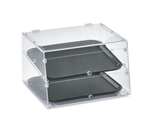Display Case, counter top, slant front, self/full-service, non-refrigerated, 18-1/2"W x 16-3/4"D x 12"H, accommodates (2) 14" x 18" trays (included), (2) front & (1) rear lift-up doors, clear acrylic, rubber feet, KD