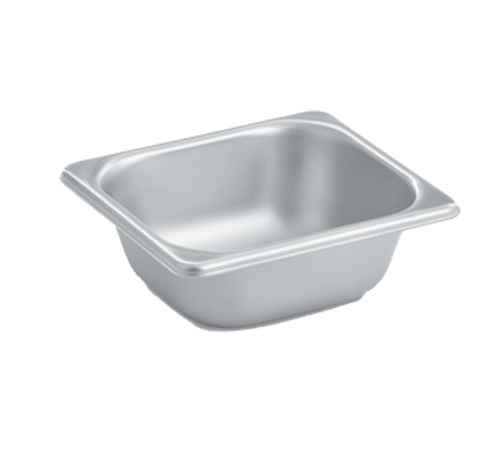 Steam Table Pan, 1/6 size, 1 quart, 6-7/8" x 6-3/8" x 2-1/2" deep, 20 gauge, anti-jam corner shoulder, 300 series stainless steel, NSF, Made in USA