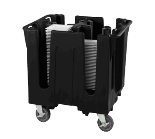 Traex® Adjustable Dish Caddy, 32-3/4"W x 27-1/2"D x 30-1/2"H, (6) stacks, accommodates 4" to 8" round plates/bowls, dual side handles, stackable, includes: vinyl cover, (4) casters (2) braked, black, NSF, Made in USA