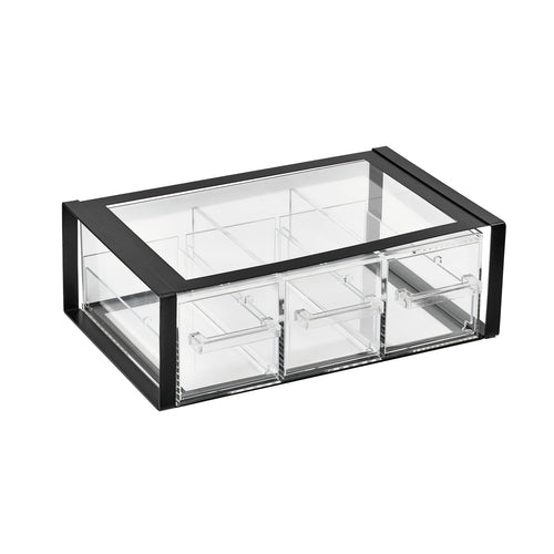 Cubic Acrylic Display System, 22-3/8"W x 14-1/2"D x 7-7/8"H, includes: metal black frame, (1) full case with (3) drawers (#SBB33), (12) reusable chalk labels & (1) box of chalk, NSF (sold by case only)