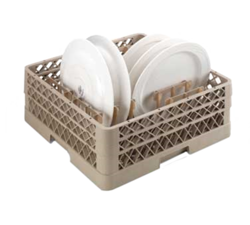 Traex® Full Size Extended Peg Rack, accommodates plates up to 12-1/4" (31.3cm) diameter, 6" peg, open bottom & sidewalls, full size, 6-3/8" (16.2cm) inside height, 7-1/8" (18.1cm) overall height, handles on all (4) sides, beige co-polymer plastic, double wall construction, snap-fit extenders, NSF, Made in USA, pegs are beige
