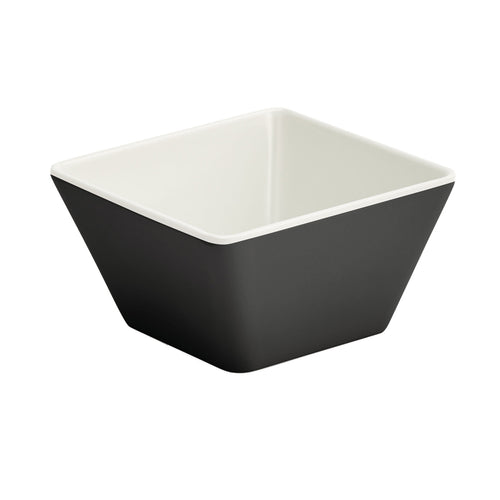 Melamine Bowl, XS square, Black. 1/8 QT. 3 1⁄2" W x 3 1⁄2" L x 2 1⁄8" H. Dishwasher safe.