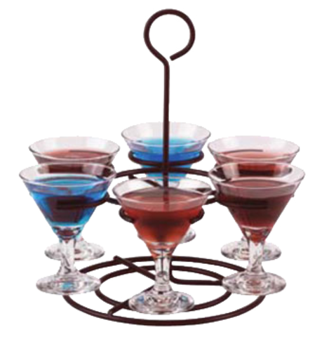Circular Wire Flight Caddy, accommodates 6 glasses, black powder coat