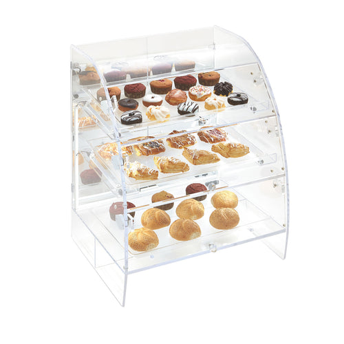 Extra Large Display Case, countertop, 3-tier, 32-3/4" H x 28-1/2" W x 23-1/2" D, (3) 18" x 26" clear trays, front (3 individual) & rear doors with soft down hinges, LED & mirror package included, 1/2" acrylic, must ship LTL