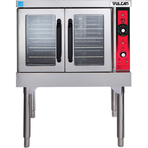 Convection Oven, gas, single-deck, solid state controls, electronic spark ignition, gentle bake mode selector switch, 60 minute timer with audible alarm, 150° to 500°F temperature range, (5) oven racks, independently operated doors with windows, porcelain enamel interior, stainless steel doors, front, sides, top, painted 23-3/4" legs, 1/2 HP, 60,000 BTU, CSA, NSF, ENERGY STAR®