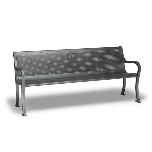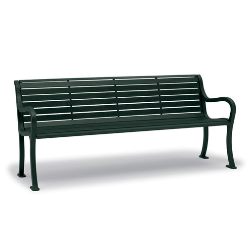 Urbanscape® Covington Bench, 6'L, vertical slat back & seat, steel, with arms, aluminum frame, powder coat finish