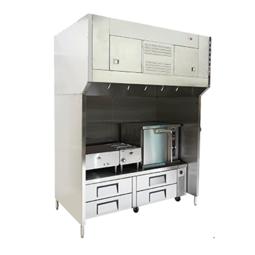 Universal Ventless Hood, 72" cooking zone, vertical air discharge, 4-stage filtration: grease filter, pre-filter, HEPA filter and charcoal filter, (4) LED lights, stainless steel stand, self contained ANSUL® R-102 system, Certified Type-1 compliant, 1 HP, UL Classified, cULus Classified, US (NON-RETURNABLE Item) (For replacement filters, this model requires (2) Pre-filters (22618) & (2) HEPA Charcoal Filter Packs (WL0711)) (Note: field convertible to horizontal air discharge)