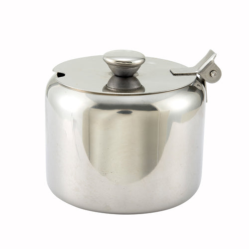 Sugar Can, 10 oz., with cover, slotted, hinged lid, stainless steel (Qty Break = 12 each)
