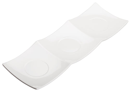 Trio Plate, 16-3/8" x 5-1/2", three-compartment, rectangular, break-resistant, dishwasher safe, melamine, Akila™, Ardesia™, white, NSF (24 each per case) (Qty Break = 1 case)